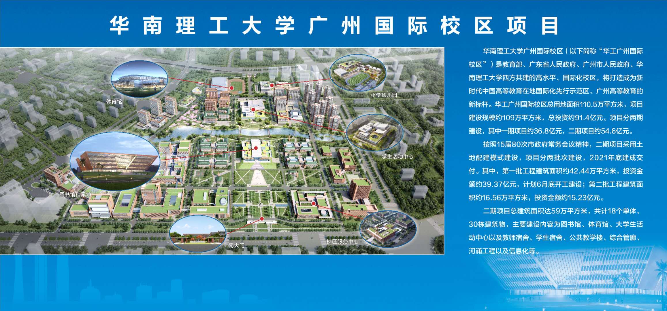 华工广州国际校区是教育部、广东省人民政府、广州市人民政府、华南理工大学四方共建的高水平、国际化大学,项目由星空电竞地产按照土地配建模式出资建设,校区招生规模约1.2万人,致力于打造成为中国高等教育国际化先行示范区、广州高等教育新标杆,赋能广州发展,助力广州打造大湾区人才培养高地。