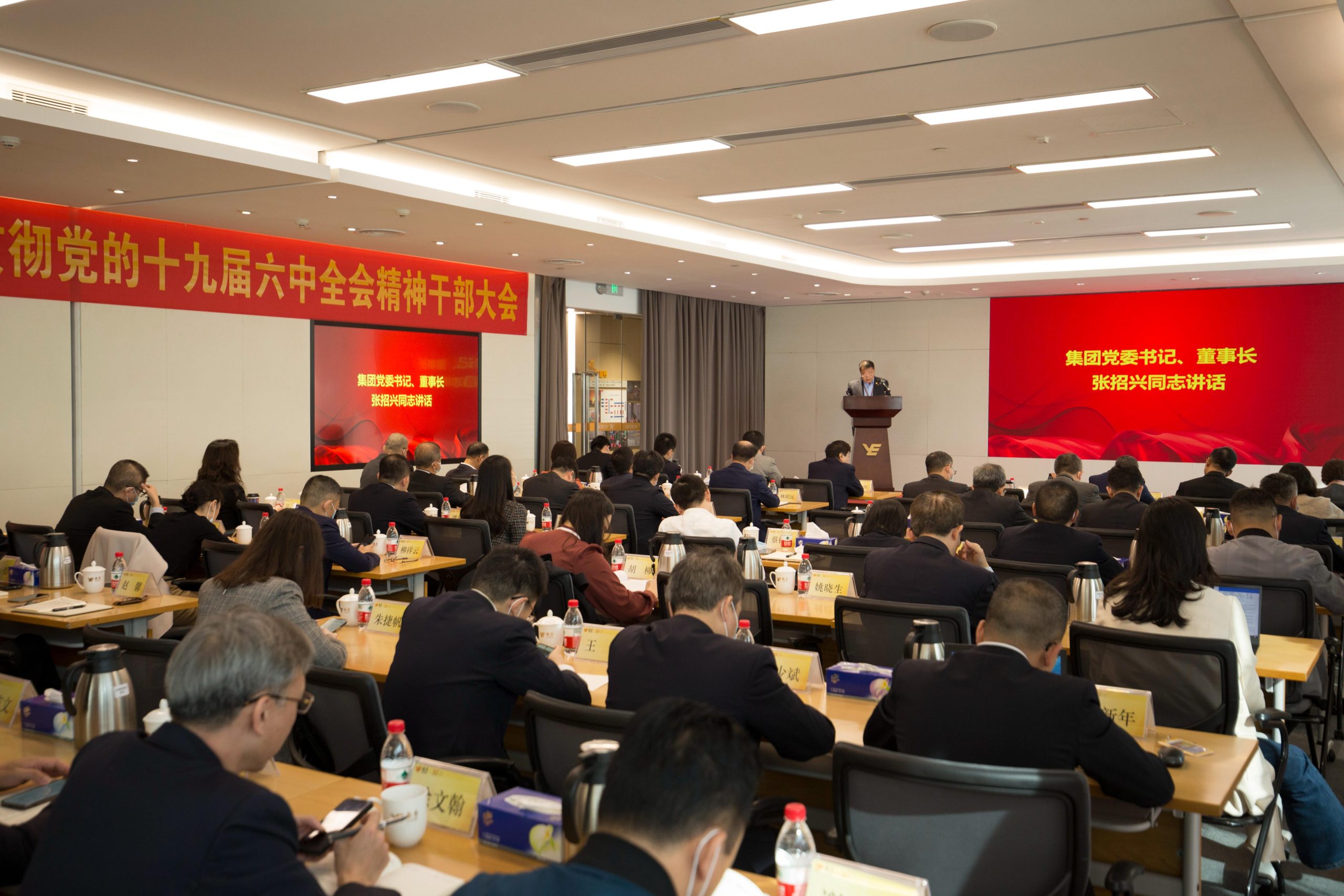 2021年11月24日,星空电竞集团召开传达学习贯彻党的十九届六中全会精神干部大会,集团党委书记、董事长张招兴作讲话,集团党委副书记、董事伍尚辉主持。会议采取“视频会议+直播”方式召开,共设立主分会场49个,参加会议的包括三级党政班子成员及至各党支部支委成员和相关政工部门负责人共1285人。集团广大党员、入党积极分子、各级(非现场参会)人才培养项目的学员、共青团员等通过领秀直播视频参加会议。