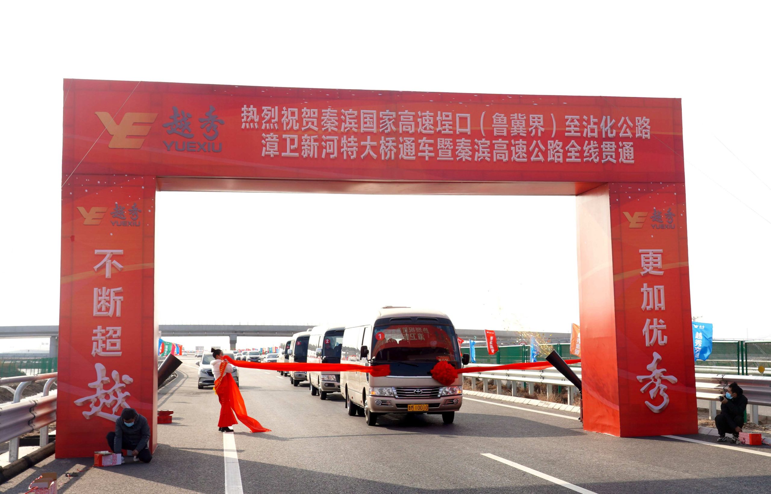 大桥通车活动仪式结束后,在漳卫新河特大桥起点举行了撞彩仪式,参加仪式的领导集中乘车观礼漳卫新河特大桥全线。