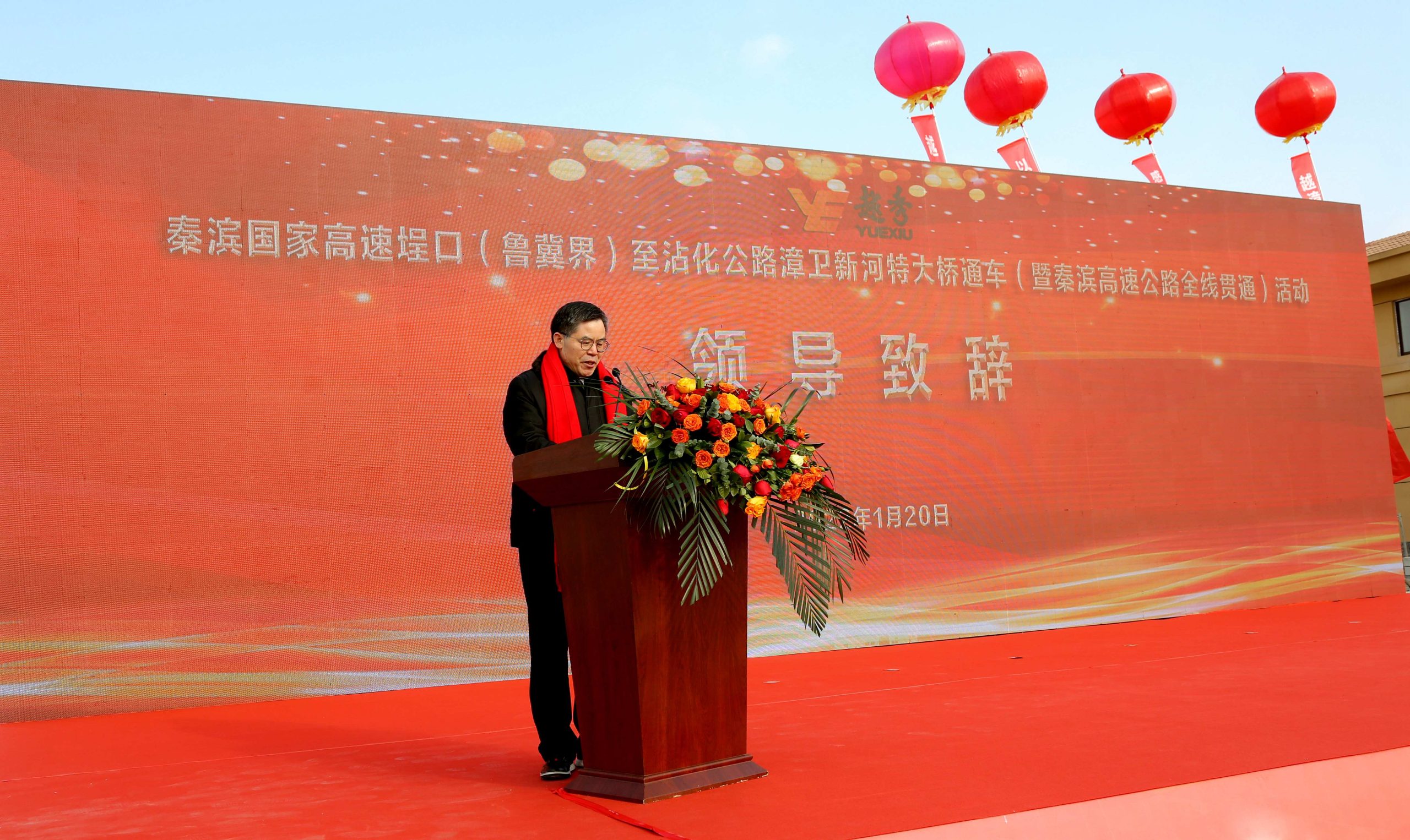 李锋董事长与参加仪式的领导共同按下启动杆,宣布星空电竞秦滨高速埕口(鲁冀界)至沾化公路漳卫新河特大桥正式通车,秦滨高速全线贯通。
